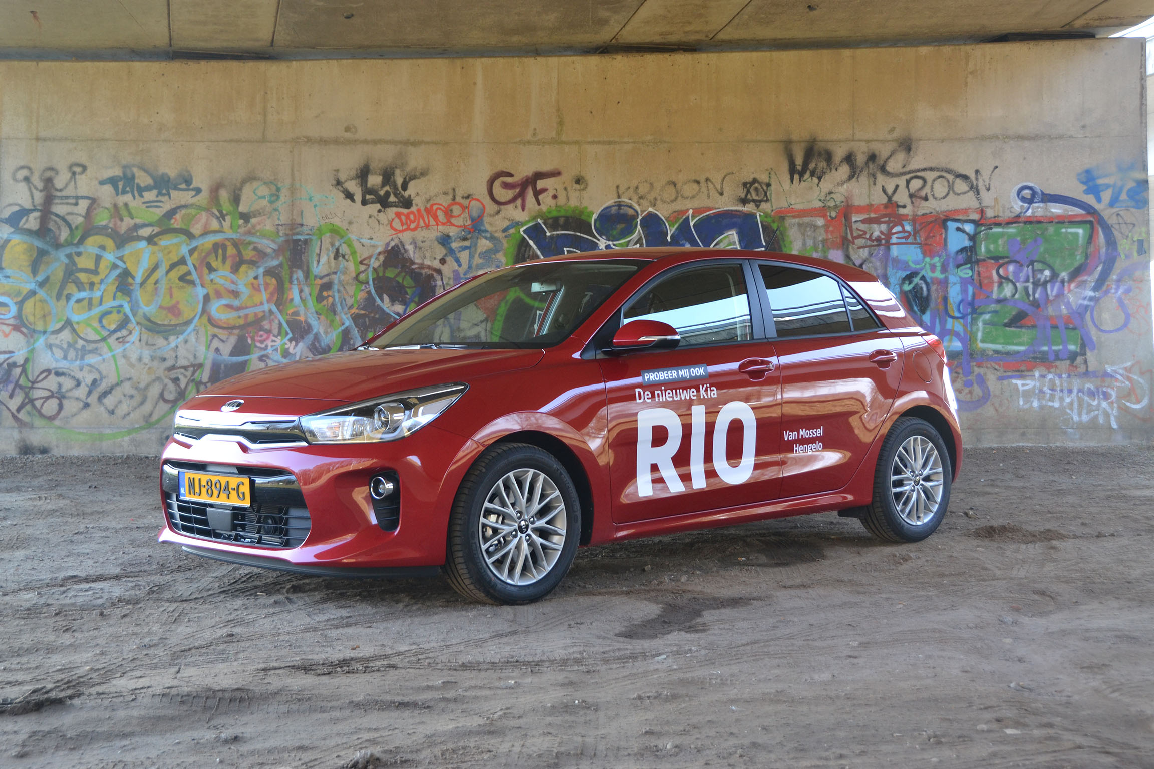 Nog geen dag was de nieuwe Kia Rio gearriveerd bij Van Mossel met vestigingen in Apeldoorn en Hengelo of ik mocht er mee op pad. Natuurlijk nam ik eerst alle tijd om de Kia Rio te bewonderen. Het eerste dat opvalt is het sportieve uiterlijk. Dat komt doordat de auto laag op de weg ligt, een coupéachtig silhouet heeft en op de zijkanten een dynamische, v-vormige lijn heeft. Daardoor lijkt de Rio naar voren te schieten – zelfs als hij stilstaat.