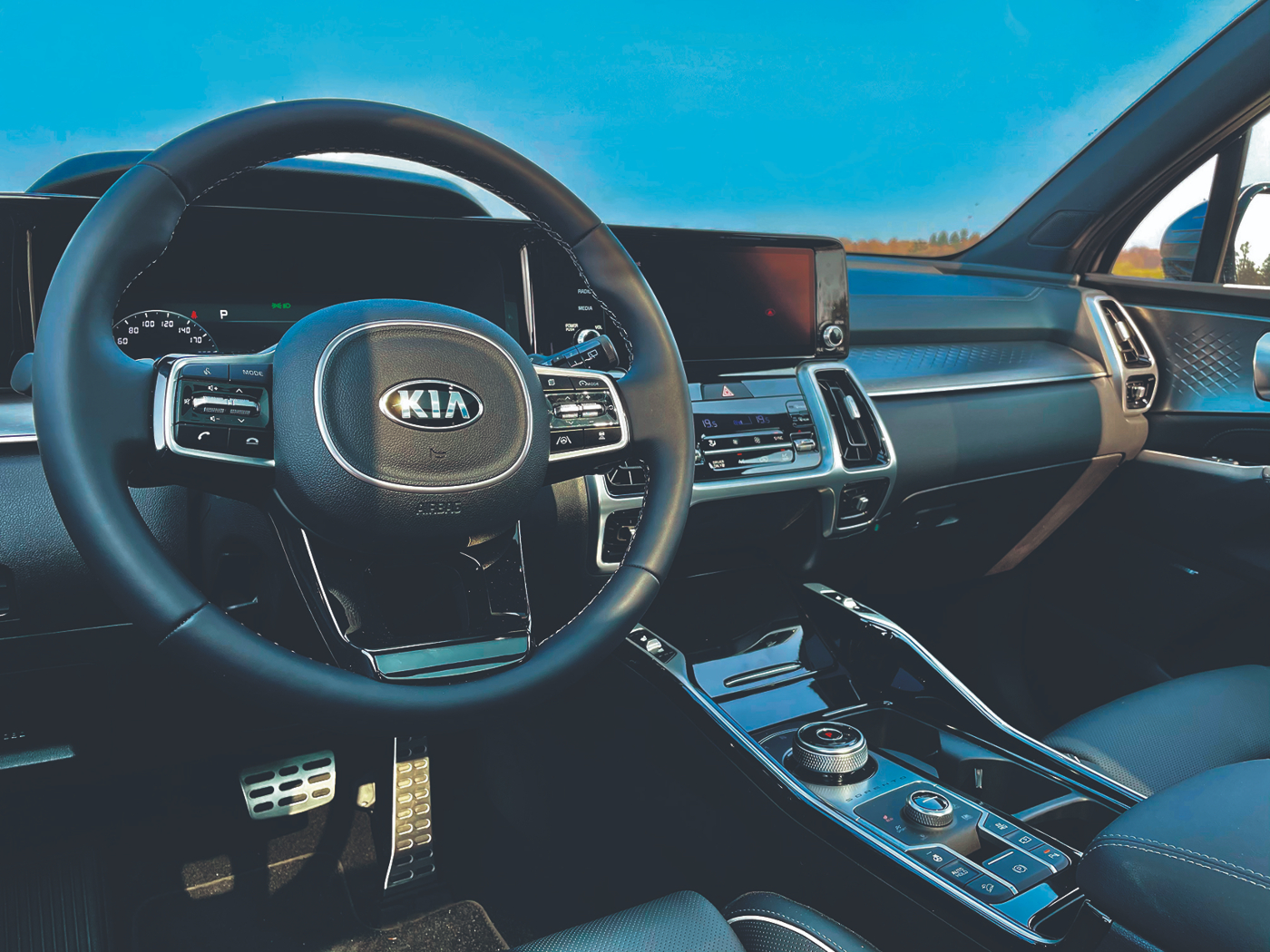 Kia zet met de nieuwste Sorento in op een geraffineerd uiterlijk; de SUV kreeg een subtiele belijning met mooie details zoals de brede grille die overloopt in de koplampen, de zilveren trim rondom ramen en deuren en een mooie achterlichtsignatuur met verticale LED-lichtstroken. Een contrasterend zwart onderstel en sportieve diffuser in combinatie met de hogere bouw geeft hem een imposante indruk. Het interieur heeft een aantrekkelijke, premium uitstraling. Luxe, stijl en comfort vormen de leidraad; alles heeft een nette, moderne uitstraling met sportieve textuur. Het zeer ruime 12,3 inch digitale instrumentarium biedt alle informatie die we wensen en Kia’s riante 10.25 inch touchscreen systeem (vanaf DynamicLine uitvoering) zorgt voor een optimale verbondenheid met de buitenwereld. Met de UVO-connect app blijven we ook buiten de auto op de hoogte van bijvoorbeeld de laadstatus, rijafstanden en zijn functies zoals de klimaatbeheersing te bedienen. Wie gaat voor de meest uitgebreide ExecutiveLine editie treft ook nog een minder geziene optie aan: de heads-up display. Deze projecteert de snelheid, navigatie en andere cruciale informatie op de voorruit voor de bestuurder. Zo hoeft men nooit de ogen van de weg te halen. De Sorento biedt een ruim interieur met standaard 5 en optioneel zelfs 7 zitplaatsen. De bagageruimte is met 898 liter en een vrijwel vlakke laadvloer erg handig in gebruik. Aandacht voor details heeft Kia zeker: de tweede zitrij is op afstand neer te klappen, staand bij de achterklep. Ideaal voor gemakkelijk laden van grotere items. Opeens is álles mogelijk, zoals Kia benadrukt in de brochure.